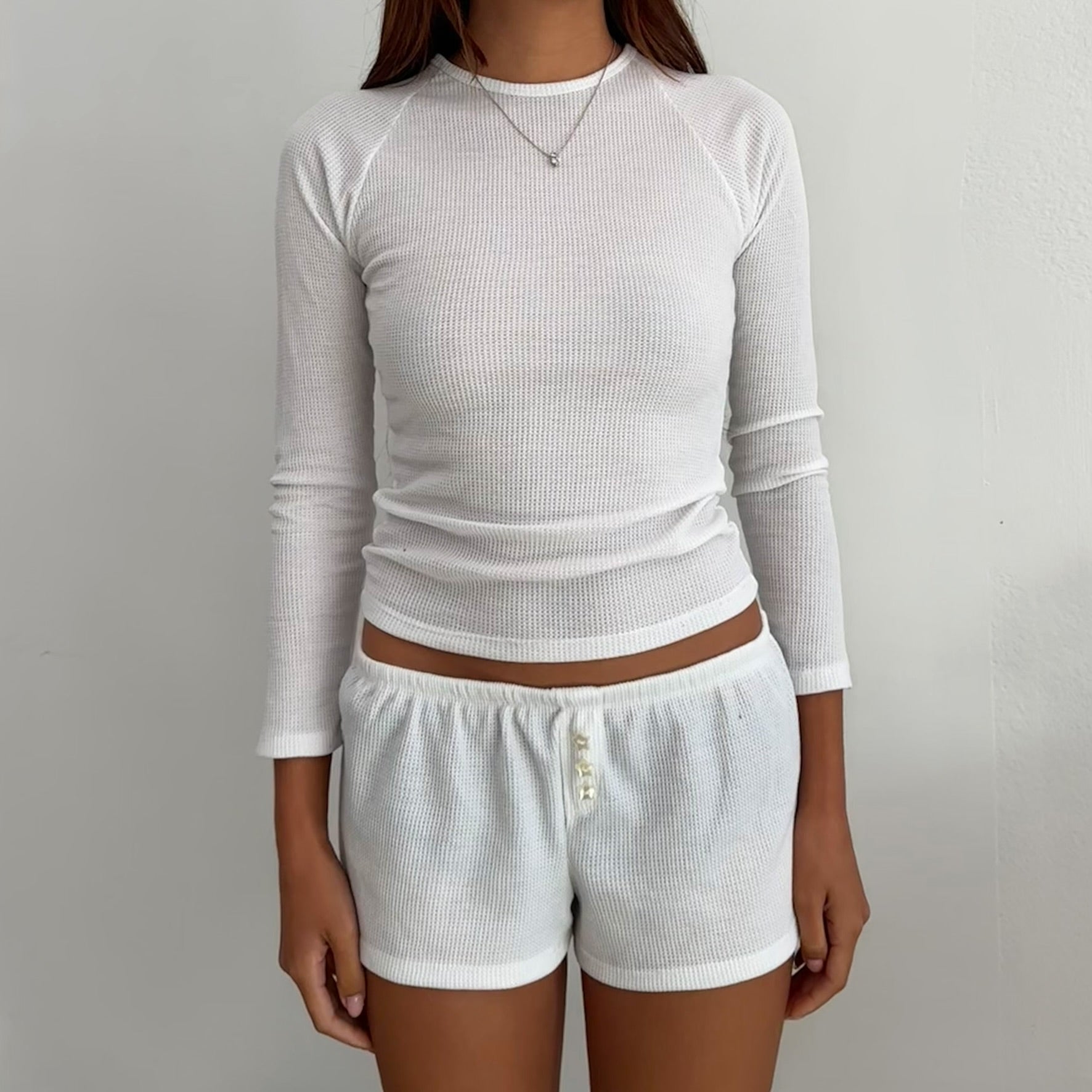 White Waffle Set - Long Sleeve